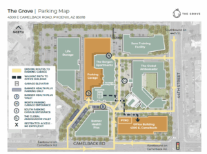 Park in the parking garage located in the same building as the apartments, The Bergen. See map provided for garage entrances. Once parked, use elevator or stairs and follow signs to 4300 Office Building. Parking will be validated.