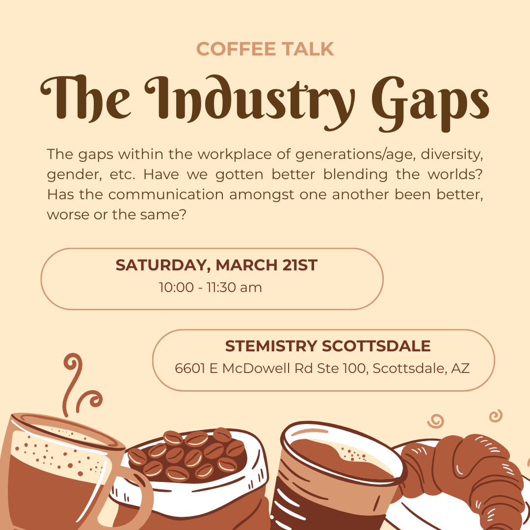 Join us for a cozy Coffee Talk at Stemistry Scottsdale as we explore The Industry Gaps. We’ll gather for an open conversation about generations, diversity, communication, and the experiences that shape how we work and connect with one another. This is a relaxed, welcoming space to share, listen, and learn from different perspectives — all […]
