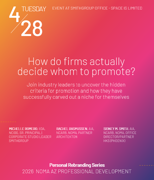 Join us for our first 2026 NOMA AZ Professional Development: Personal Rebranding Series. "The Invisible Expert" The internal logic of how firms actually decide whom to promote. The Panel: Michell […]